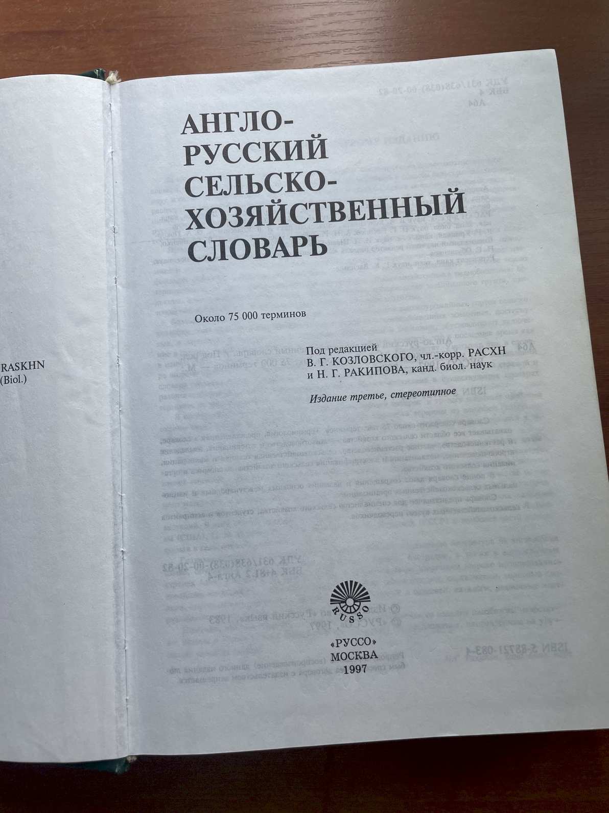 Словник містить 75000 термінів галузі "Сільське господарство".