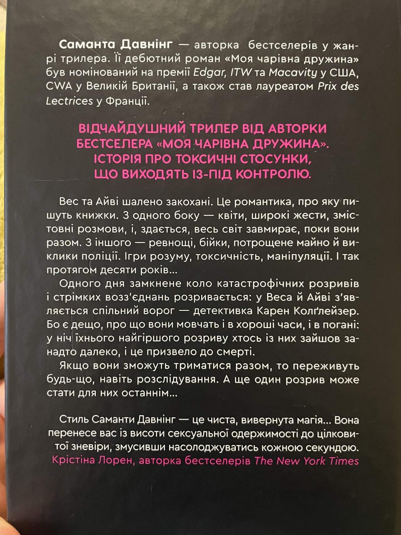 Ця книга для тих, хто любить історії про складні стосунки та психологічні трилери. Головна героїня стикається з викликами та перешкодами на шляху до щастя, і читачі будуть співпереживати їй на кожному кроці.