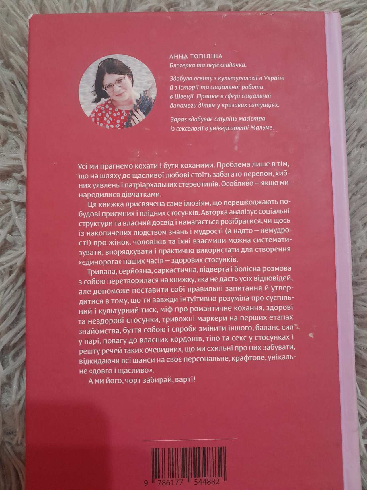 Авторка, блогерка, феміністка та культурологиня, ділиться особистим досвідом та сучасними психологічними знаннями, щоб допомогти вам розібратися у складній динаміці взаємин. Ви навчитеся розпізнавати тривожні дзвіночки на ранніх етапах знайомства, встановлювати особисті межі та зберігати свою індивідуальність, не розчиняючись у партнері. Книга допоможе вам зрозуміти важливість емоційної зрілості та відповідальності за власні почуття, що є фундаментом для міцного та щасливого союзу.