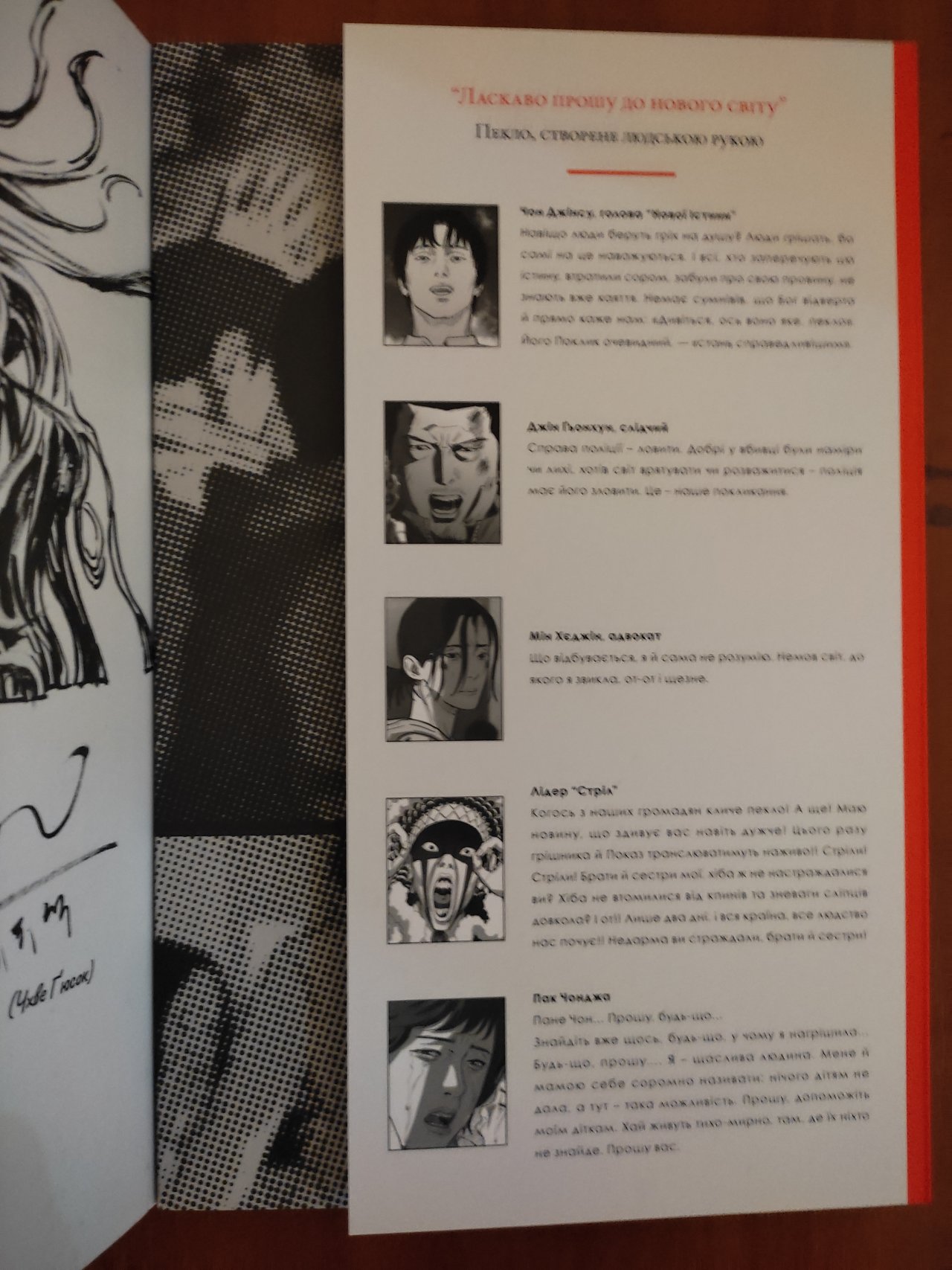 Поклик пекла - це манхва від режисера та сценариста Йона Санхо і художника Чхве Ґюсока, вона  розповідає про нове надприроднє явище з яким стикається суспільство. Люди починають отримувати попередження від невідомої істоти про те, що через певний час за ними прийдуть і заберуть прямо у пекло.