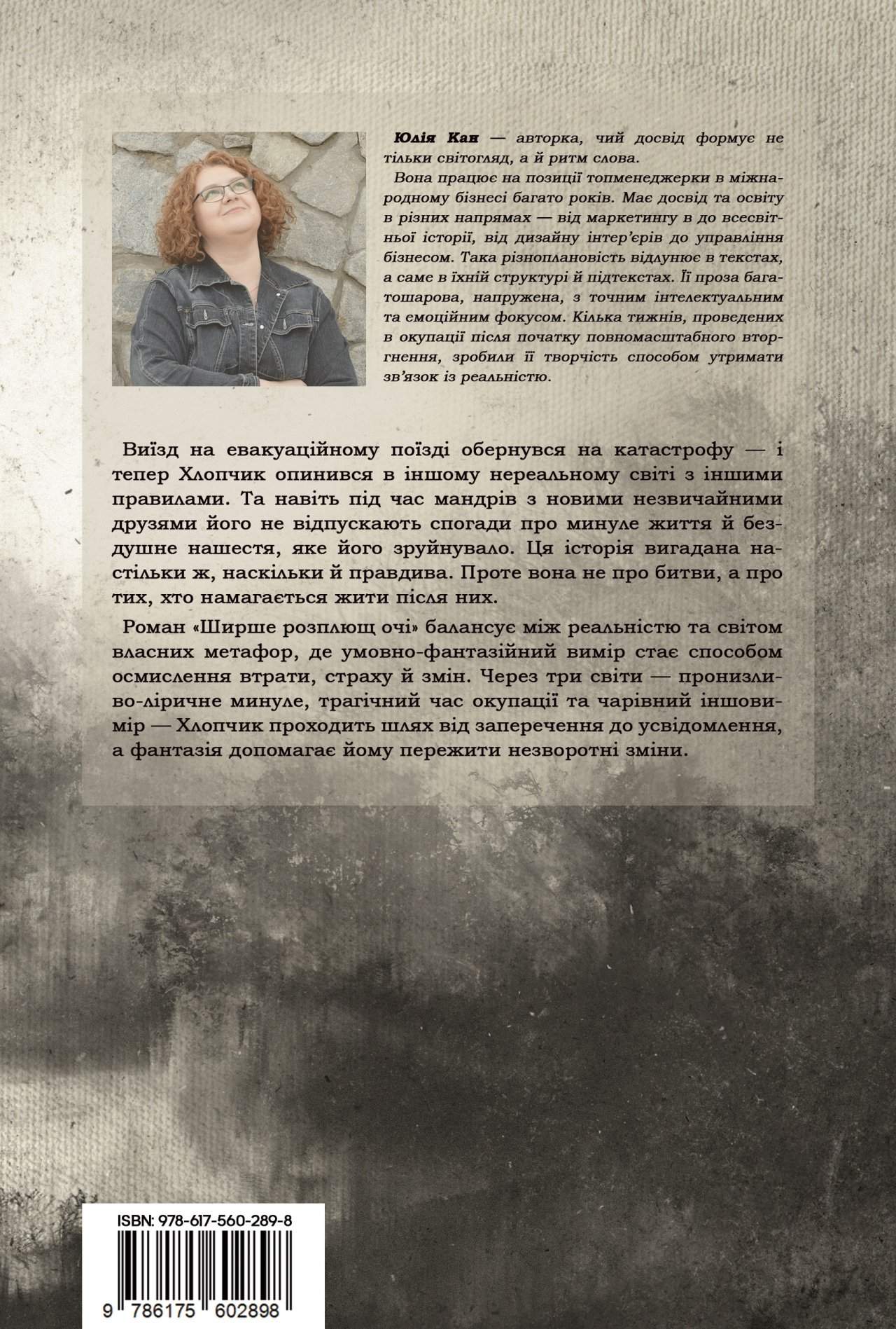 Роман «Ширше розплющ очі» балансує між реальністю та світом власних метафор, де умовно-фантазійний вимір стає способом осмислення втрати, страху й змін. Через три світи — пронизливо-ліричне минуле, трагічний час окупації та чарівний іншовимір — Хлопчик проходить шлях від заперечення до усвідомлення, а фантазія допомагає йому пережити незворотні зміни.