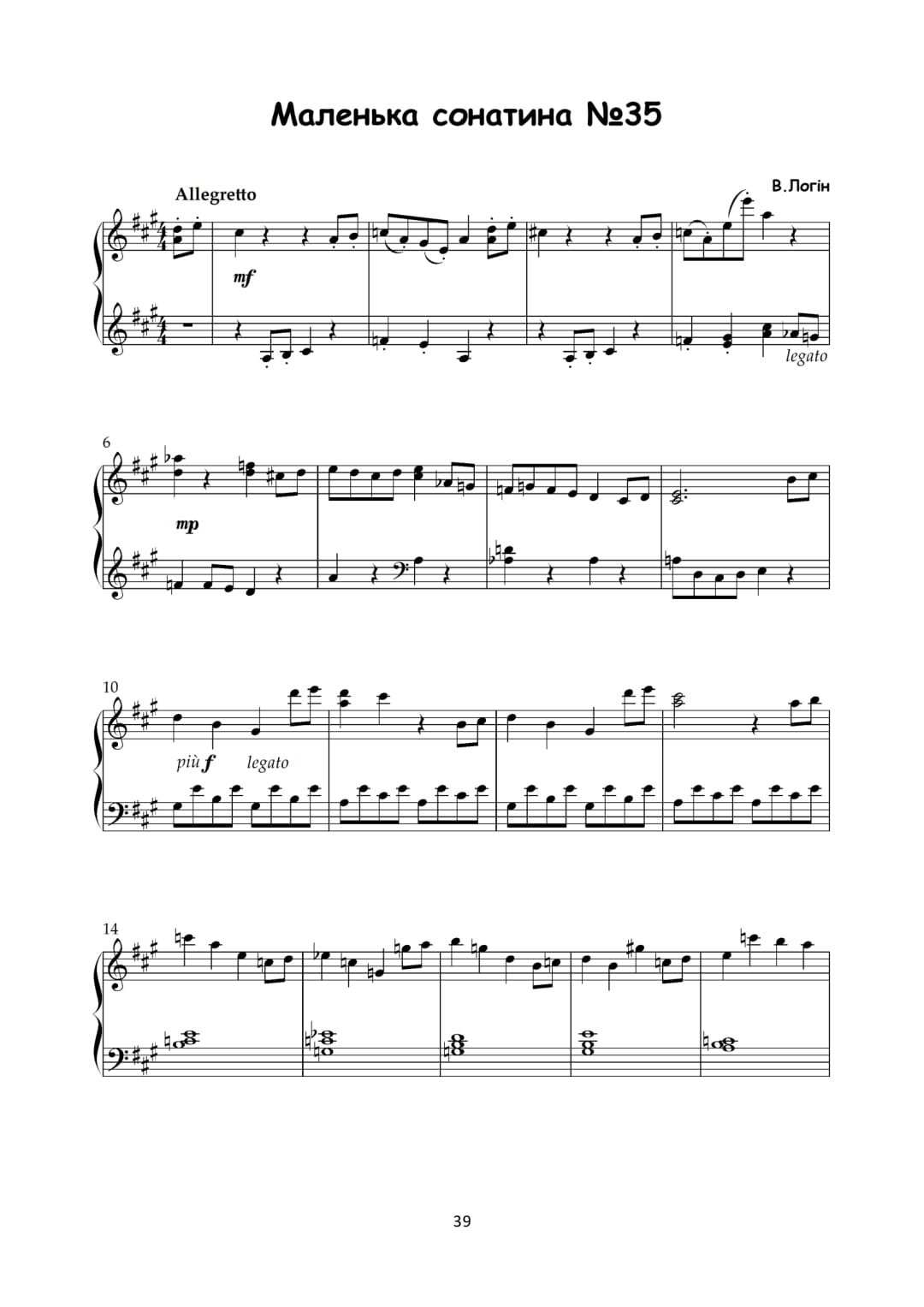 До збірки увійшли 40 цікавих маленьких сонатин, написані легкою музичною мовою. Образні, нескладні п'єси з елементами сонатної форми  поєднують казкову атмосферу з педагогічною цінністю — вони розвивають техніку, слух та музичне мислення.