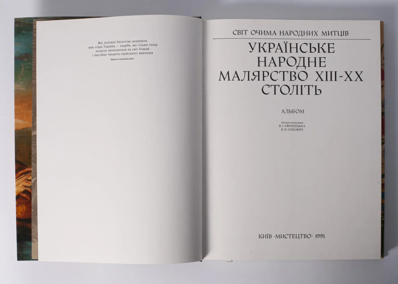 Українське народне малярство XIII-XX століть / Свєнціцька В.І., Откович В.П. /(Видання 1991 рАльбом творів українського народного малярства з музеїв України.В альбомі представлено твори народних малярів, що зберігаються в музеях Києва, Львова, Полтави, Чернігова, Дніпропетровська, у приватних колекція.«Українське народне малярство XIII-XX століть».Автори: Свєнціцька В.І., Откович В.П.Видавництво: «Мистецтво», Київ, 1991Мова: українськаСторінок: 302Розміри, см.:Довжина 32ширина 24,5